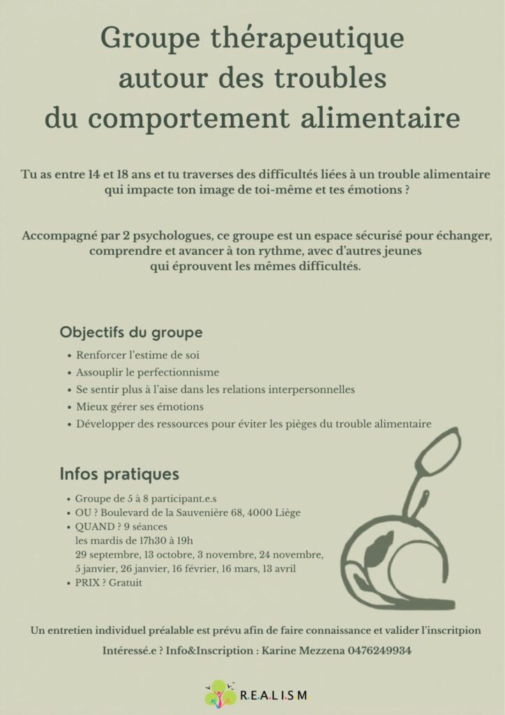 Groupe thérapeutique autour de la problématique des troubles du comportement alimentaire
